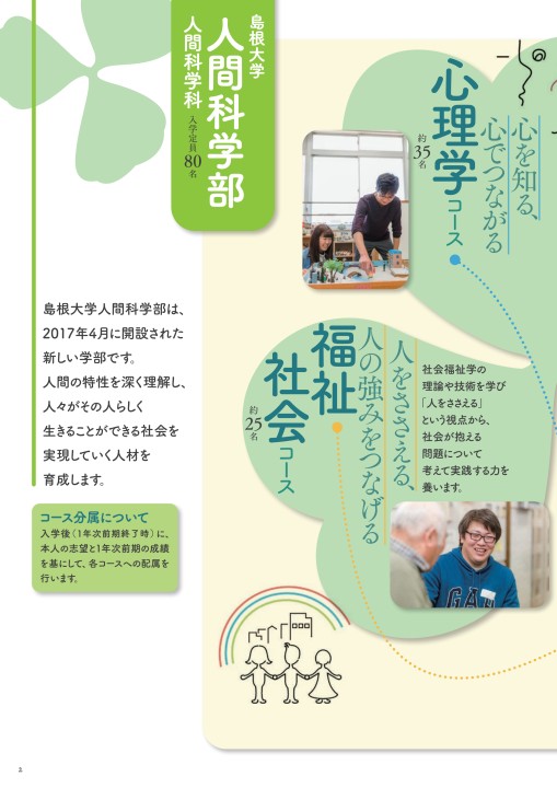 人間科学部福祉社会コースの紹介はこちらです 島根大学法文学部・人文社会科学研究科 〒 島根県松江市西川津町1060 tel: 08(代表)人間科学部 歴史 設置 17 学科・定員 人間科学80 学部内容 人間の特性を深く理解し、人々がその人らしく生きることができる社会を実現していく人材の養成を目指す。 入学後3つのコースに分かれる。 心理学コースでは、人の心や行動の仕組みなどについて臨床心理・実験心理の知見から学び、人間へ多様にアプローチする力を養う。人間科学部 情報があり 島根大学・医学部合格体験記受験勉強の不安は"勉強することでしか解消できない"ので、その分 集中して勉強した。夏休み中と夏休み後(2学期)の学習内容・学習ポイン